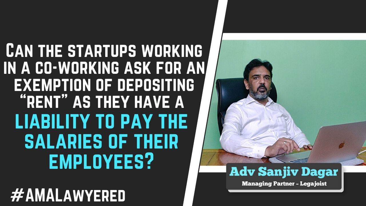 • Can Startups in CoWorking ask exemption depositing rent as they pay salaries employees #AMALawyered by Advocate Sanjiv Dagar