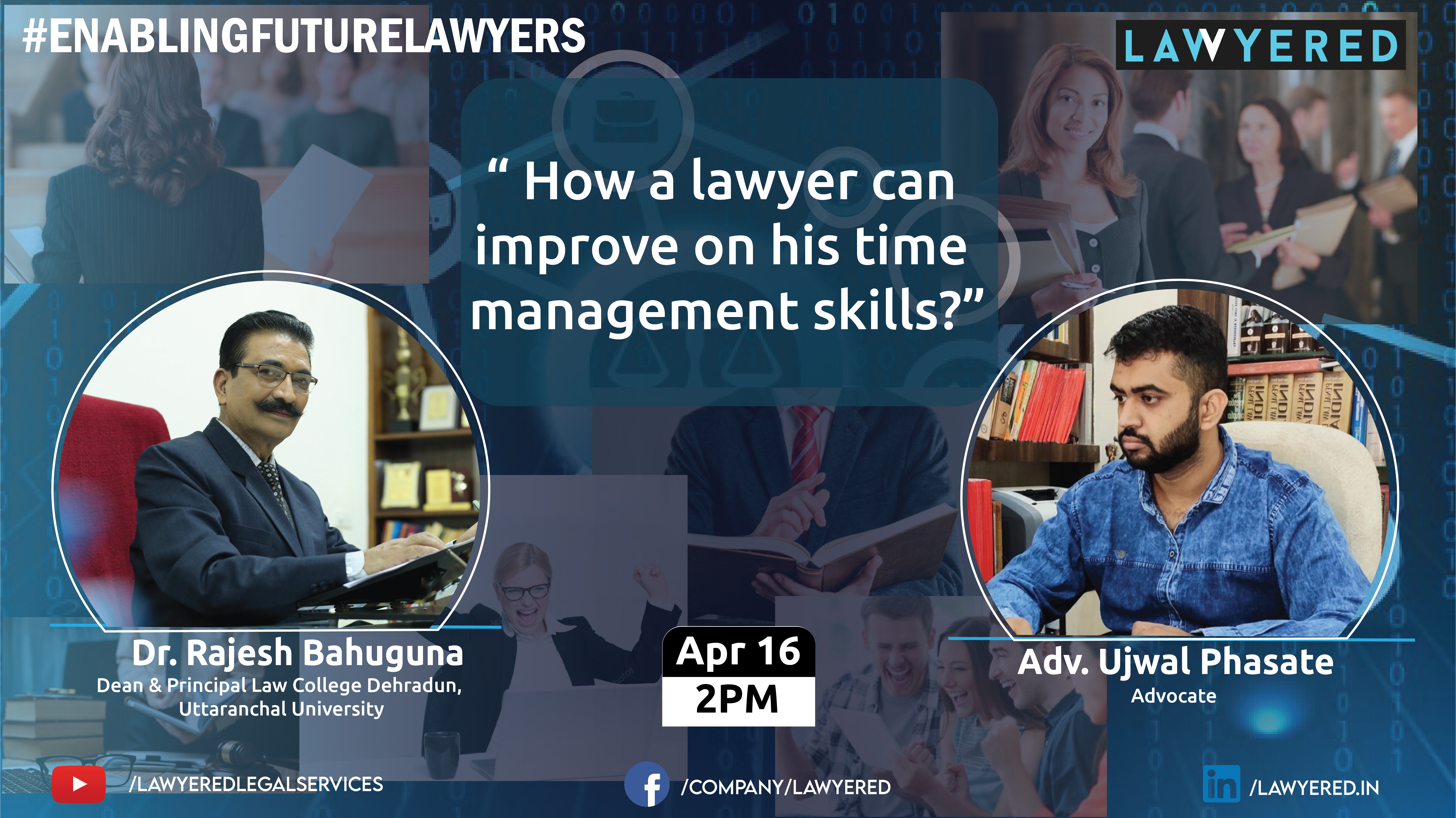 Lawyered is pleased to announce its new series #EnablingFutureLawyers​. This series is brought with a perspective to know the present scenario of legal education and how the students are preparing themselves for the betterment of the nation.This series of events is to bring out the importance of legal knowledge and how it is equipped in the students. The second episode brings together Adv. Ujwal Phasate, Advocate and Dr. Rajesh Bahuguna, Dean & Principal Law College Dehradun, Uttaranchal University to discuss the current scenario of legal education and why law students have time management skills.