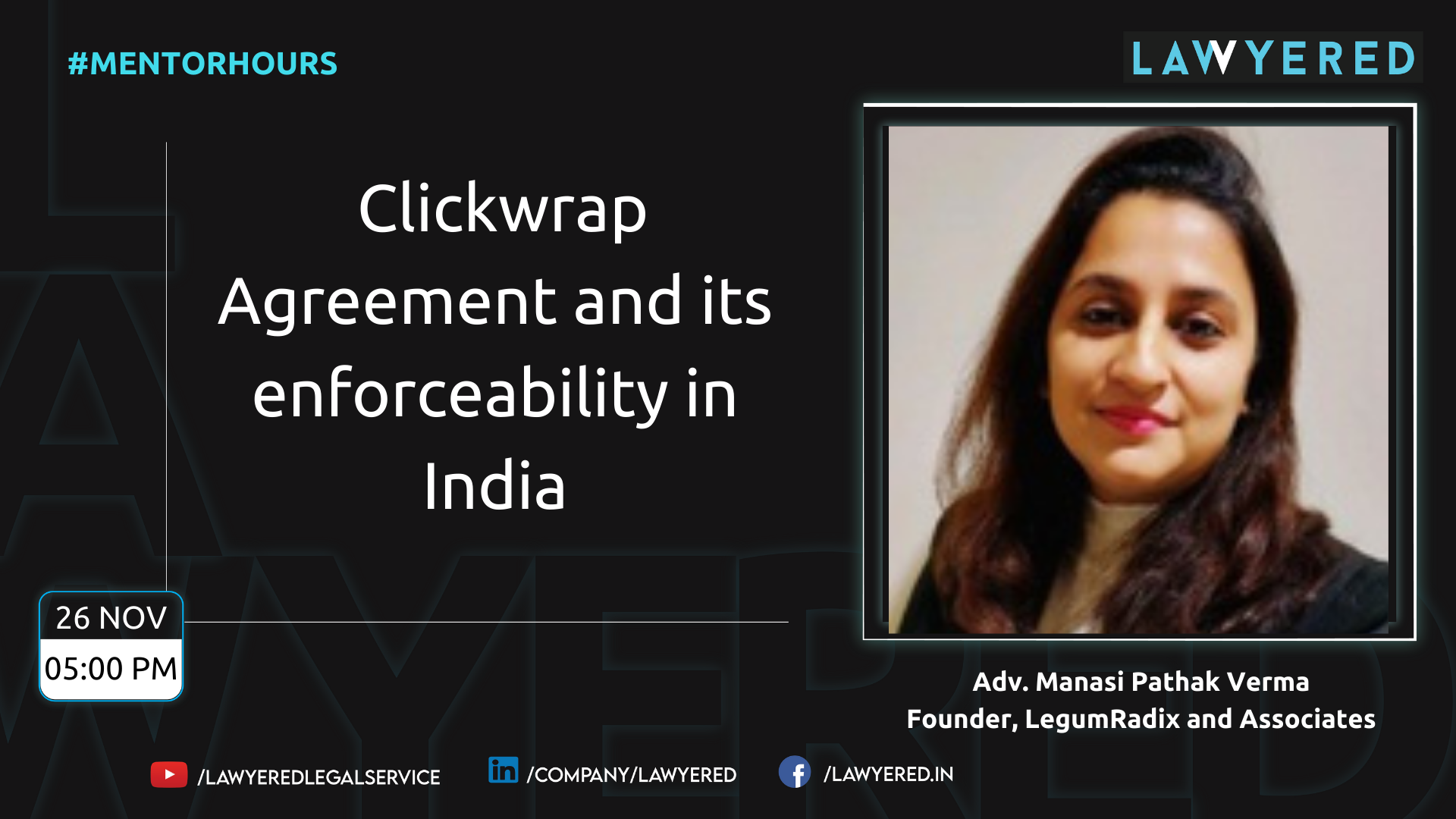 • #MentorHour on Clickwrap Agreement and its enforceability in India with Adv. Manasi Pathak Verma