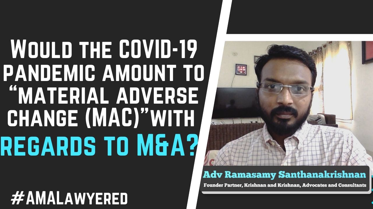 Would COVID-19 pandemic amount to “material adverse change" (MAC)  with regards to M&A #AMALawyered SANTHANAKRISHNAN