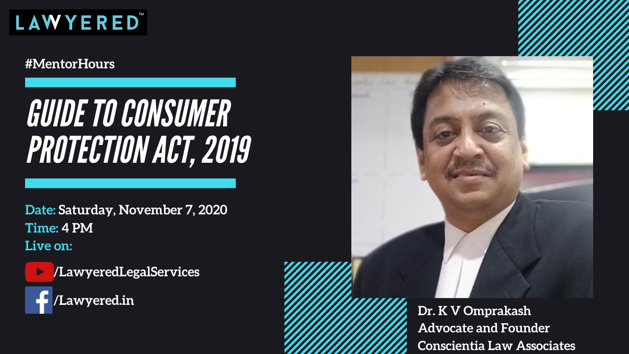 Lawyered [https://www.lawyered.in/admin/] presents the next edition of #MentorHours [https://www.youtube.com/watch?v=gtKy5JAvZX4&list=PL-uyYxj7oSsIuO_aB-Nv5t63aAlYKhdbZ] on 'Guide to Consumer Protection Act, 2019'. The webinar was conducted by Advocate K.V. Om Prakash [https://www.lawyered.in/lawyer-profile/om-prakash-kv-1909/], Founder - Conscien...