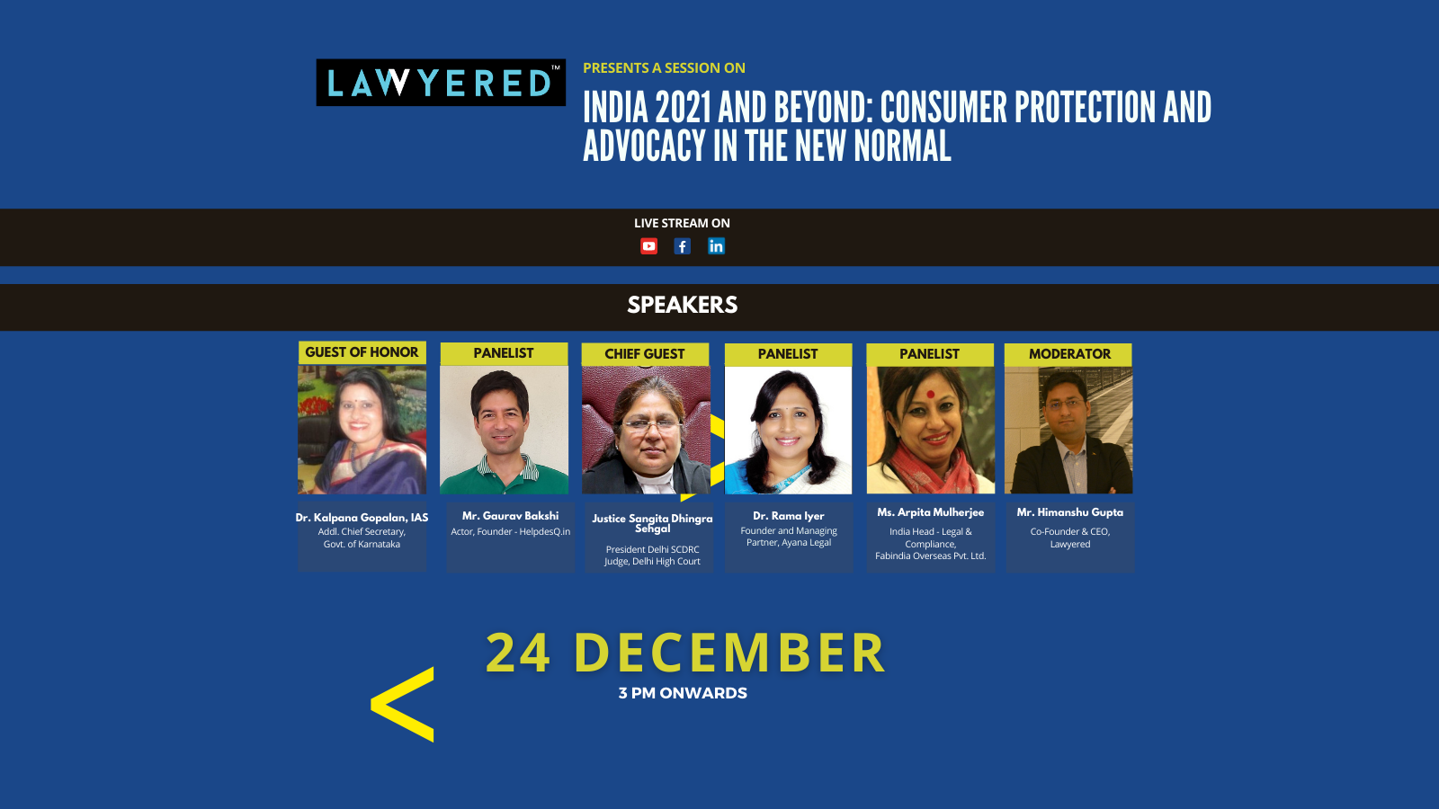 Lawyered celebrated National Consumer Day on 24 December, 2020. India 2021 & Beyond: Consumer Protection and Advocacy in the New Normal "Your customer’s perception is your reality" Lawyered brought a flagship virtual roundtable discussion to mark the end of the year that had us all at the edge of our seats. This National Consumer Rights Day,...